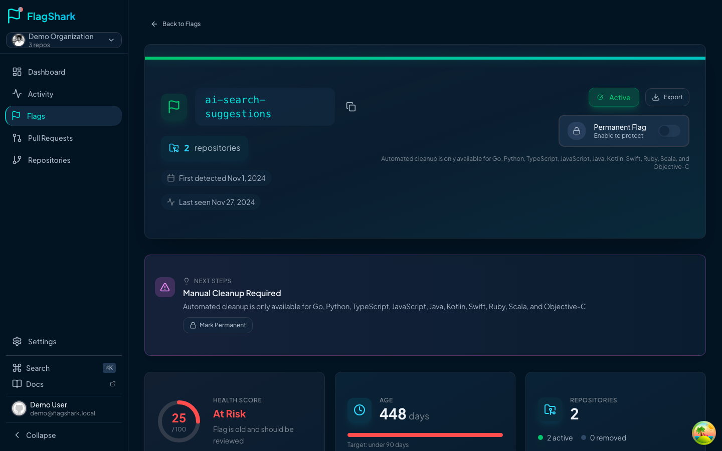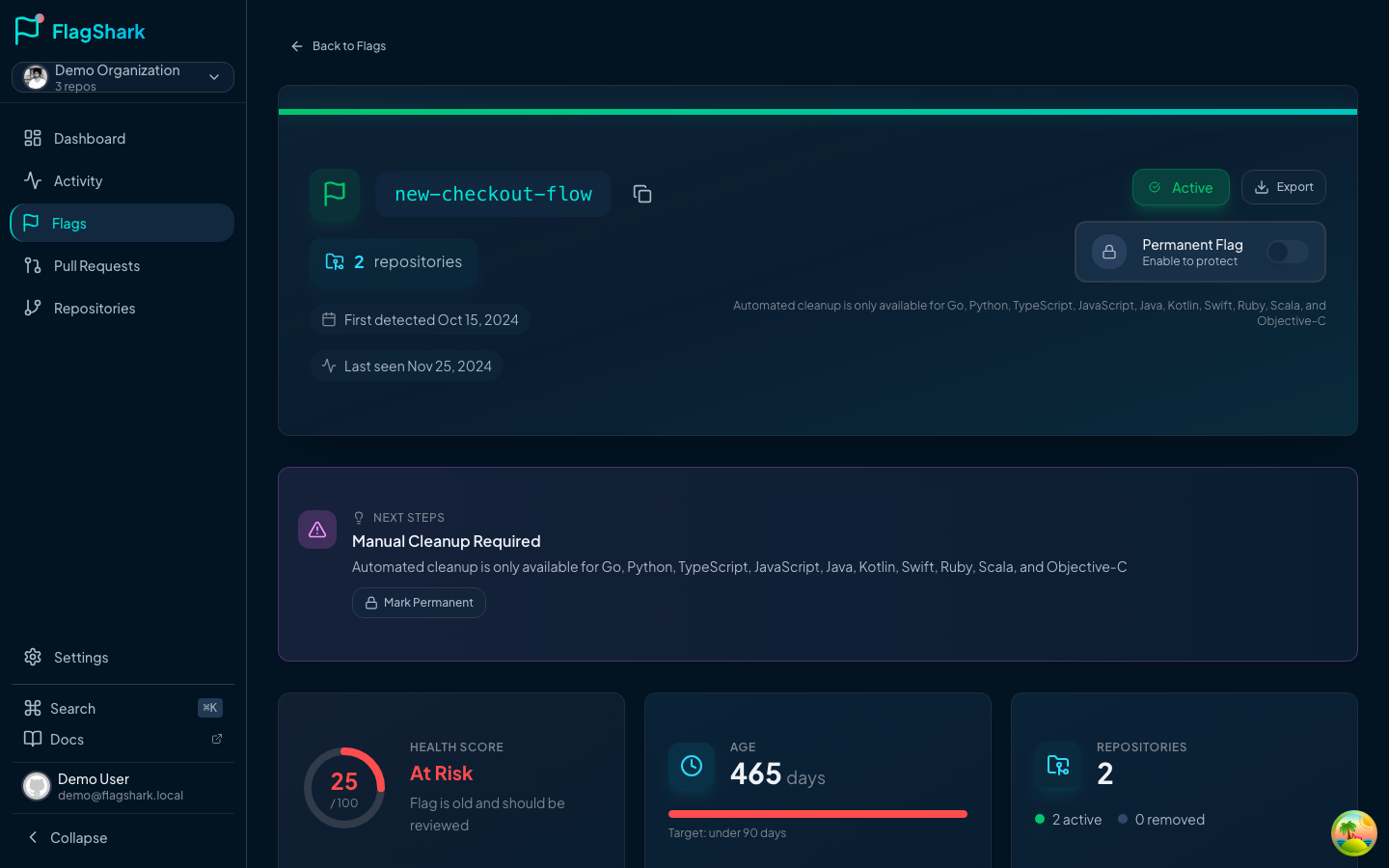 - Average flag age: How long flags live before cleanup